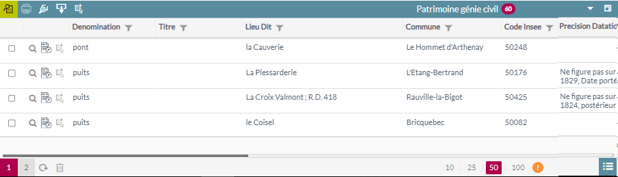 ; il suffit ensuite de faire une recherche par commune, par la référence / le nom de l'élément patrimonial.